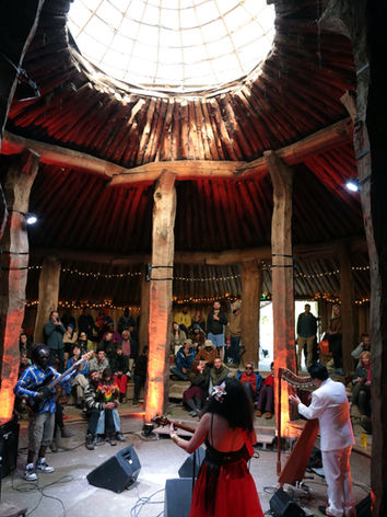 Jaminaround is an intimate, small capacity event whose aim is to create powerful, memorable experiences for audience and performers alike. Helped in no small part by it's very special venue - a 250-seater iron age roundhouse - at The Ancient Technology Centre in the village of Cranborne in Dorset. It is a most spectacular and awe-inspiring place to perform and be performed to.